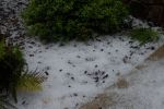 Here are some pictures show all the hail… The storm came at the front of the house, so the courtyard caught a lot. And then the shot with the quarters shows how large some of the hail was. Most were pea size, but some were quarter size!
