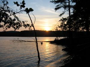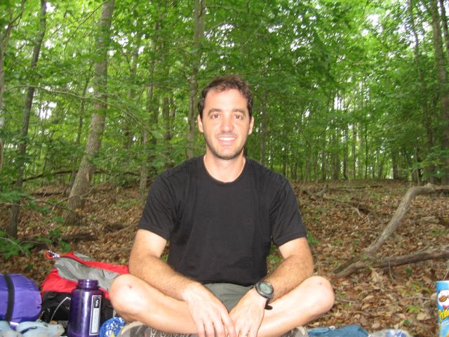 I was finally able to take Riley on an over night backpacking trip. We went to a local part of Jordan Lake — New Hope Overlook — that has about 6 miles of hiking trails and 2 primitive camp sites. I had planned on going to site A as it is closest to the water and thought that would keep us more entertained, but the guard told me there were 4 sites taken by a boy scout troop, and 2 other sites taken, so we opted for Site B, where no one had yet reserved a spot.