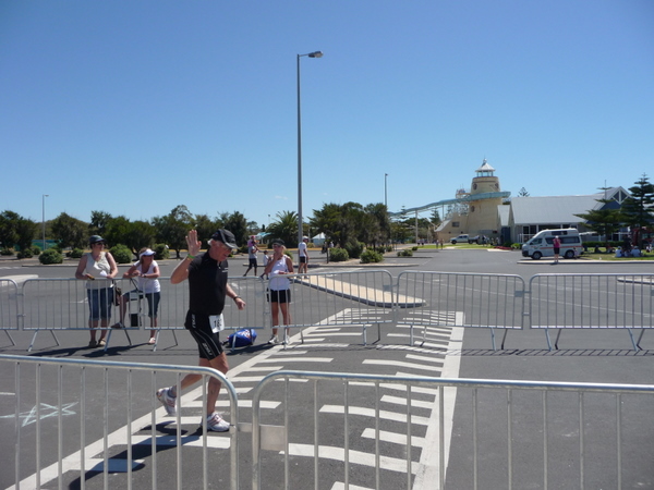 12:53 I guess I missed Dad finishing lap 2 but he is out there now. I have been standing where I can watch both the pros on the run and the start of the bike loop.