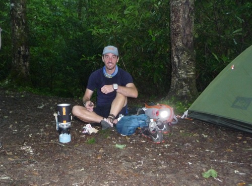I of course tossed and turned.  I normally don’t sleep that well the 1st night out on a back packing trip, and the night before a big race or event is also always difficult.  So I tossed and turned.  And tossed.  And turned.  I looked at my watch many times and it seemed like time was moving in slow motion.  Finally at 4 a.m. I decided I might as well just get up and go rather than wait any longer.  I grabbed my pack, bag, and pad as quietly as I could and walked the 100 meters up to the Fontana Shelter bathroom.  There were some tent campers on top of the hill with a HUGE blazing fire.  At 4 a.m.!  Weird.   Anyway, there I put my sleeping bag and pad in their respective packs, filled my hydration bladder and two hand held bottles, and walked the 200 meters to the car.  There I quickly got a cup of coffee brewing, got dressed, and put my final gear in order.  I opted here to skip my oatmeal breakfast — there was no way I could eat anything right now, so I decided to stuff another bar in my pack and head out.  I hit the restroom at the visitor center, climbed the stairs back to the dam, and started running at 4:38 a.m.  Officially that means I ran an extra 1/2 mile or so since SCAR starts at the border of the GSMNP.  I was cool with that.  🙂