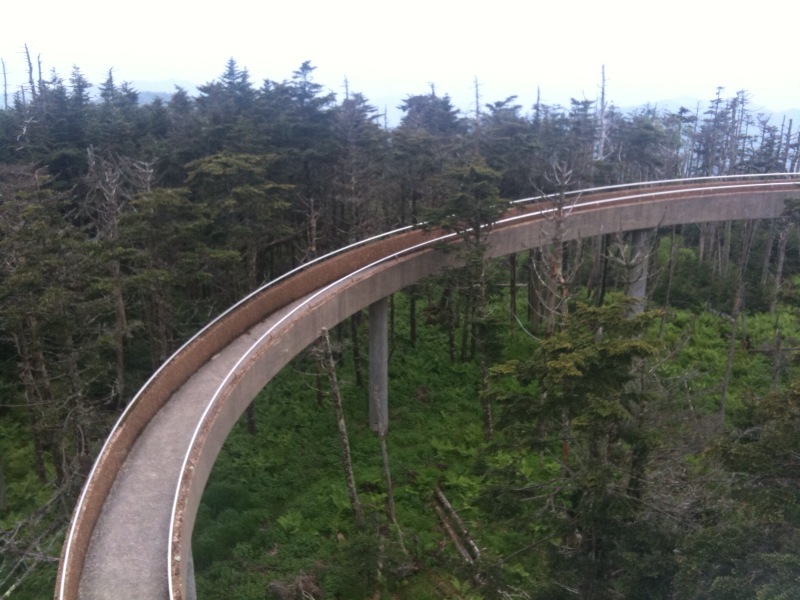 From Derrick’s Knob to Clingman’s is about 10 miles and 2000 feet of climbing.  Would the ascent never end?  It was gradual, but there was so little flat ground to gain some speed!  One thing about the AT is that there are often long sections with very little mountain vistas and views, especially in the summer when the trees are full.