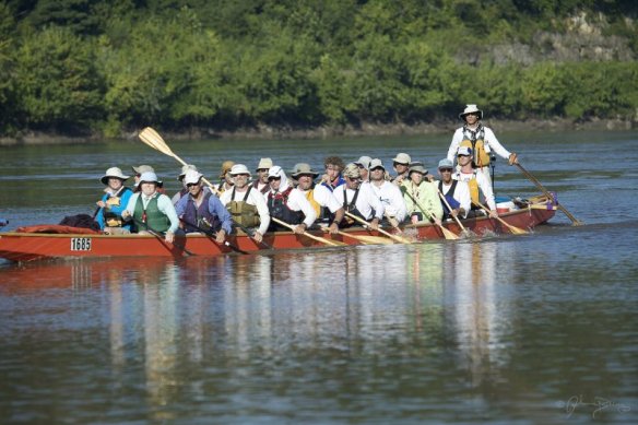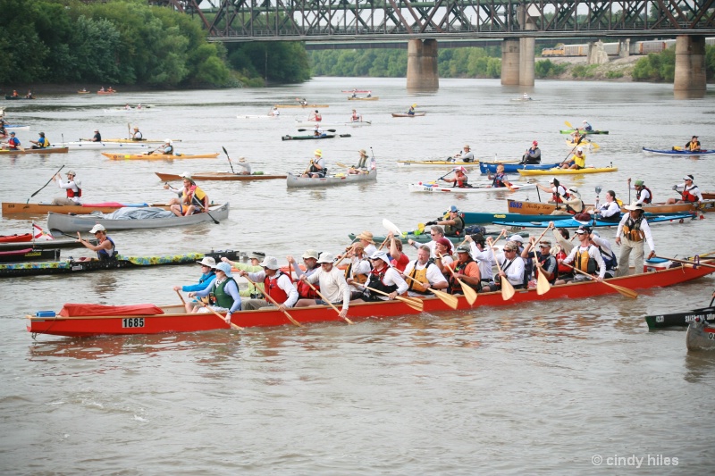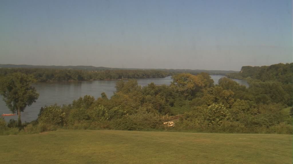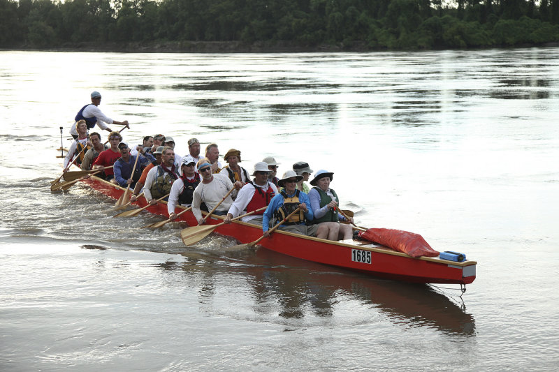 After we had finished the race, and recovered with sleep, it was fun to head over to the RiverMiles forum and read what had happened along the river while we were on the water, and to read about what had occurred since we got off the water. One funny thing was that Val, who was supposed to be on the team but could not make it once the race was postponed, was posting about us, and hoping to catch us on one of the river netcams. Well, she caught us, and the photo is below. Supposedly the netcam takes a shot every 12 seconds, but we only showed up in this one… Maybe were were going too fast! π