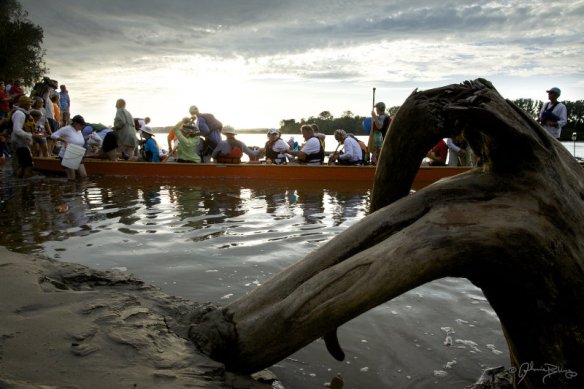 We were never to see him again, but after we had finished we heard he had dropped. But then about 20 hours after we had finished the race, and gone back to the finish line to get the dragon boat out of the water, we saw him come in! I was quite happy to see that, as typically the front runners of a race, if they have a bad day, will just drop. Not many persevere to the end. I walked over, shook his hand, and congratulated him on sticking it out, and he said that is why he was there. We later found that he had gotten pretty sick after he dropped off our tail, and had pulled over to rest. Eventually he made it to the next CP, where he refueled and tried to go out again, but capsized twice within a minute of going out. At that point he went back ashore, went to a hotel, showered, slept, etc., and, 19 hours later, went out to finish the race.