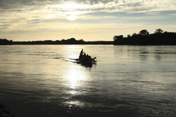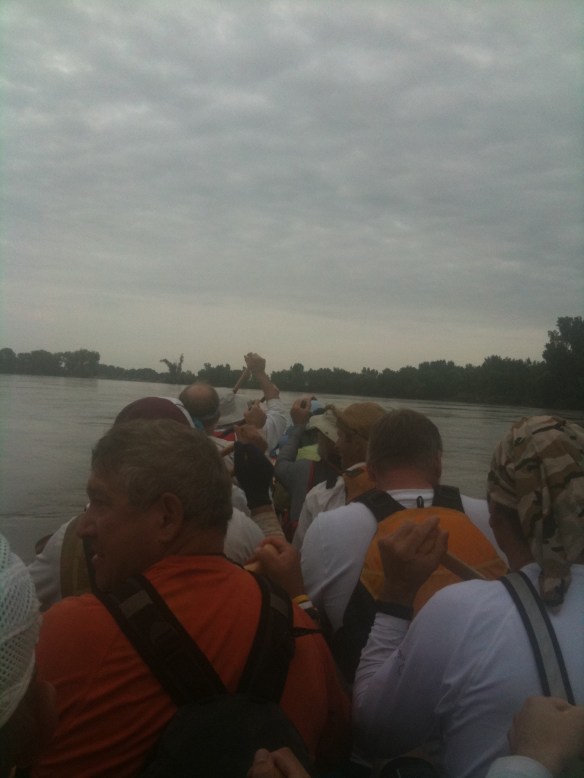 As was the case at most of the check points, I always tried to jump out of the boat and, with the pretense of “holding the boat steady” so it would not float away and that it would be easier for others to get in and out of the boat (while in reality relieving myself in the relative comfort and obscurity of the water), I did that about 24 hours into the race, which would have been Jefferson City. I really have no idea what check point it was — from the water and not being familiar with the river and the area, while they each looked a little different, I really had no clue what the names were. But based on timing, I’m pretty sure it was Jefferson City…