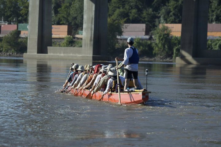 Brawny got pretty far ahead of us at one point, running comfortably in 3rd. We finally were able to catch him, and it was then that he told us the barge that had just gone by had caused waves which made him capsize. After “swimming for 20 minutes,” and getting all his gear together, he jumped off the river bank and got in behind us in order to draft. A few of us in the back were trying to devise a strategy in how to drop him so that it would not come down to a sprint finish for 3rd at the end, but he dropped off the back after about 15 minutes of drafting and we never had to implement our strategy. Which basically would have been to paddle faster. π