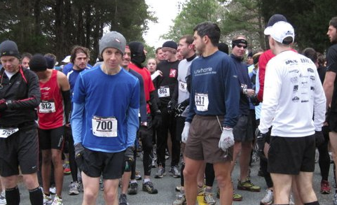 Last year, Run at the Rock was a total mud-fest.  This year, it was a bit chilly, with the starting temp around 35F, though that isn’t nearly as cold as last year’s Little River Run which was 16F.  I opted for my CW-X 3/4 tights, and an icebreaker 200 body-fit top (non-zip — I like the zipper kind better).   I’ve only run short distances in the CW-X’s, and then only when leaving directly  from home.  This time, I put them on, and then drove into town to meet Bridget and Kent, before driving the 45 minutes to the park.  When we got there and I got out of the car, my feet felt a little tingly.   I was really cold so I decided to go back to the car for a few minutes and crank the heat.  I even took my shoes off to rub my feet to try to get them to come to life.  I could not figure out why they were tingling!