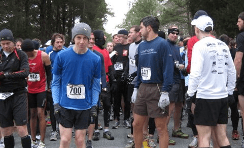 Eventually I had to go back to the start, where I hung out with a few people chatting away.  Somehow I ended up on the 2nd row, and with both a 7 mile loop and 14 mile loop, with nearly 100 in the 14 and nearly 300 in the 7, I was in front of a lot of people.  Too many people!