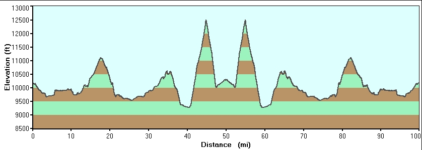 While I’ve of course been training, it’s only in the past few days that I’ve started to get a bit more serious about “researching” the Leadville course. At a high level I know the course is ~100 miles at an elevation of about 9500′ – 13,500′ feet, with a killer climb in the middle of about 3500′ in 5 or 6 miles. That after you finish the climb you have to turn around and do it again.