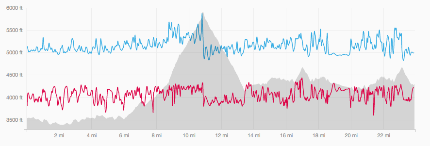 Strava data here… The GPS died around mile 24 though per the trail mile markers, this would have been closer to mile 28. And then I ran another 7-8 miles after it died for a total of 35 miles.
