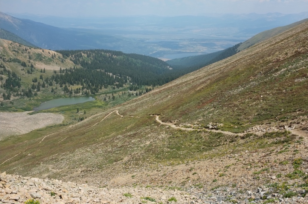 As I bring this to a close, I wanted to share a few sneak peak photos of the course that Sean will cover. Yesterday (Thursday), I got the nerve to do my first solo hike and into high altitude – to the top of Hope Pass. Hope Pass is the highest peak that Sean will cross twice – once outbound and then again inbound. It is the last hurrah before he’ll hit the 50-mile turnaround in Winfield (about 5 miles down from Hope Pass) and the big a-ha as he crosses back up and over to see this inspirational view as he heads back toward Leadville.