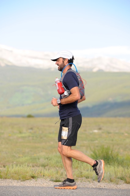 The temperature is warming up – the race started in the 30s and it was into the upper 50s by this time. The sun gets pretty intense here, especially without the trees. Soon, he’ll be entering the forest and some trails – I hope!