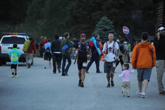 Fast forward a few hours… The kids and I nervously waited for what we hoped to be 2 guys at the Twin Lakes checkpoint – Sean and Gordo. Yeah, they arrived around 7:40 PM and Sean was off at 7:50 PM. He is definitely wearing down, but he is going to finish.