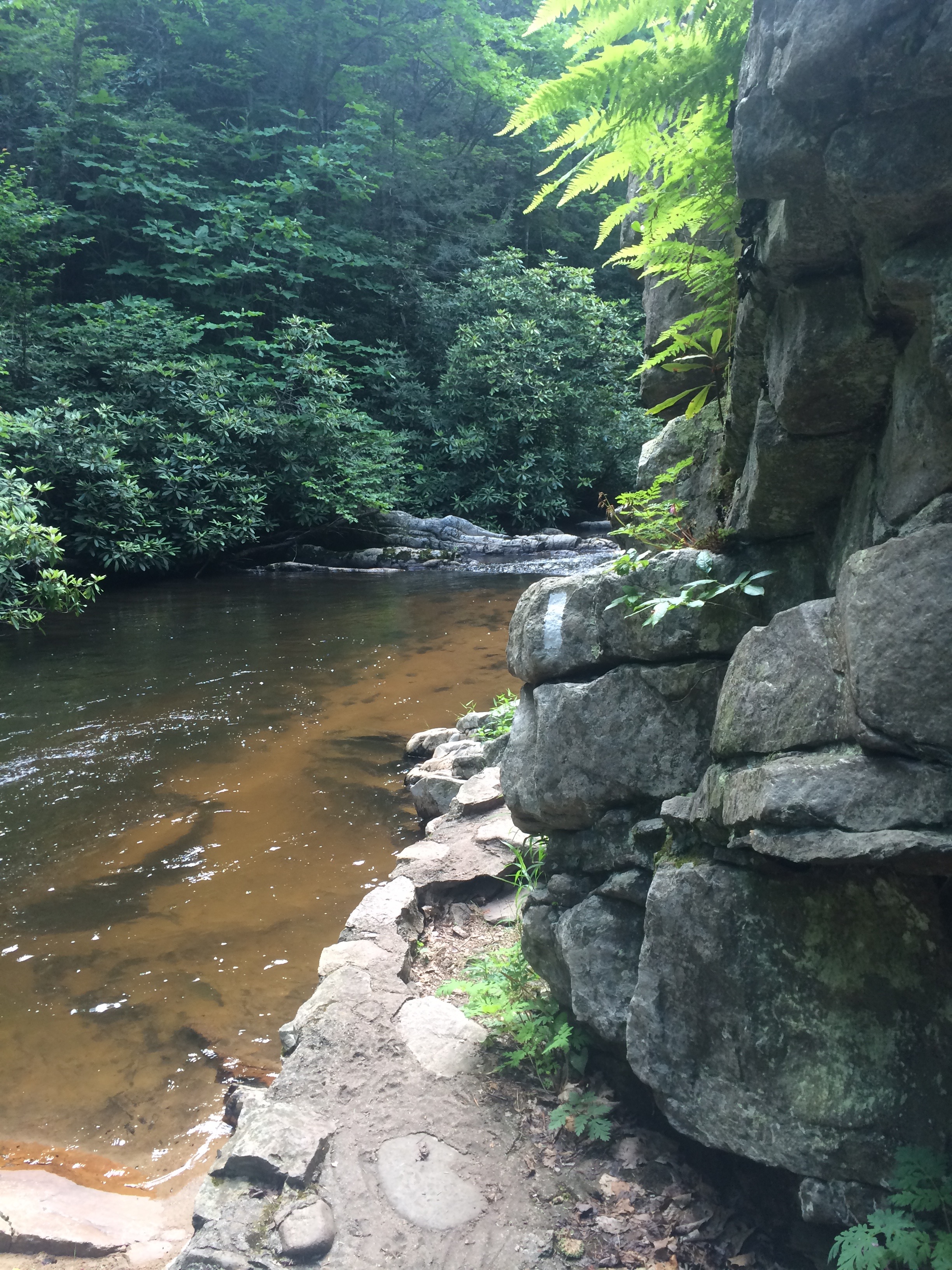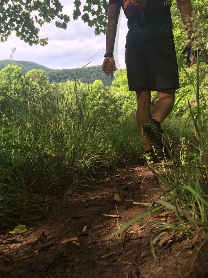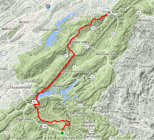 On June 12th Sho Gray and I ran from US19E to Damascus, roughly 74 miles by trail distance, but more like 75 miles or more by the time we were done. Not due to getting lost, but due to “side trips” to get water, back track a bit, etc. I had estimated maybe 20-22 hours based on the elevation profile and from what through hikers had told me — namely that the last 30 miles into Damascus was “easy.” Boy did I underestimate it! It was a very difficult run that took over 25 hours to complete, had 15,000′ of climbing, and was filled with rocks and roots and mud most of the way. Both Sho and I had moments of despair, but we persevered and made it through! Here are photo’s from the trip…