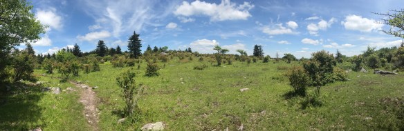 The summer Holy Trinity Chatham back packing trip was set for Grayson Highlands State Park in VA. Michael and I drove up and met the crew — large this time at 15 hikers, at the trail head. We were joining the AT at Fairwood Road (VA 603). The two of us got there late due to a nail in the tire that had to be taken care of before we left Pittsboro, right when most of the hikers were ready to go. The big group took off and Michael and I left 15-20 minutes later.