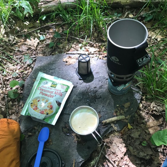 I was my own barista on the trail, waiting for the group and debating whether to go forward or back… The coconut is a bit sweet for me, but the frothiness was good.