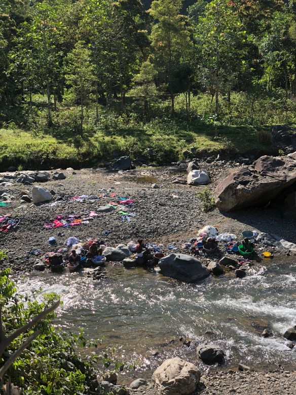 Families washing their clothes in the river: