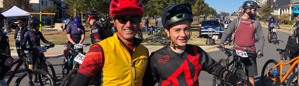 Reece and I entered the 3 hour enduro race at Briar Chapel, I in the Beginner category and he in the Junior. Beginner stays off of Bennet Mountain, which is one reason I chose beginner, but I also wanted to be on the same course as Reece. If we enter next year, I think we’ll both do Open, to get the full experience.
