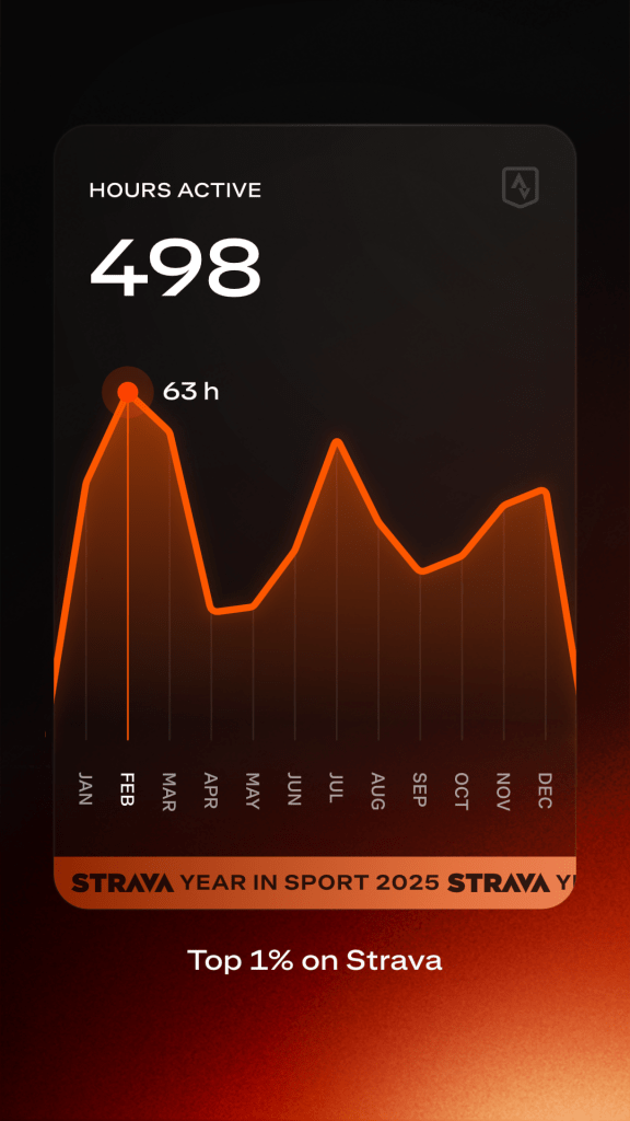 That’s 17 days less active than 2024, if anyone is counting! After Barkley in March, I did need a break, both mentally and physically, and it showed in my training. Next up is 498 hours, and that was 33 hours less than last year!