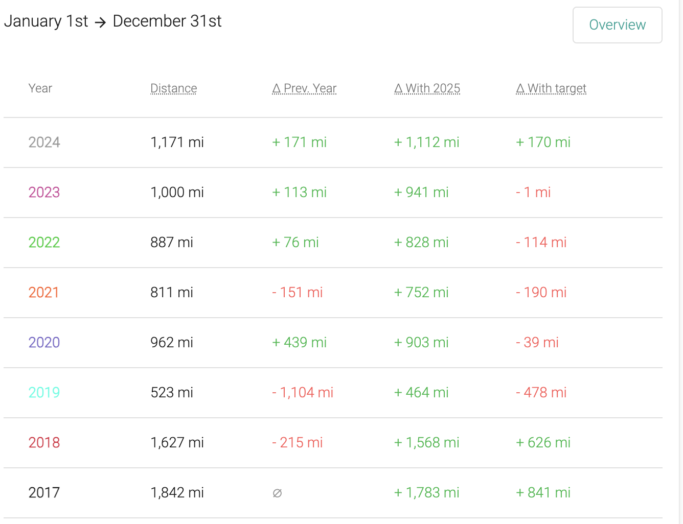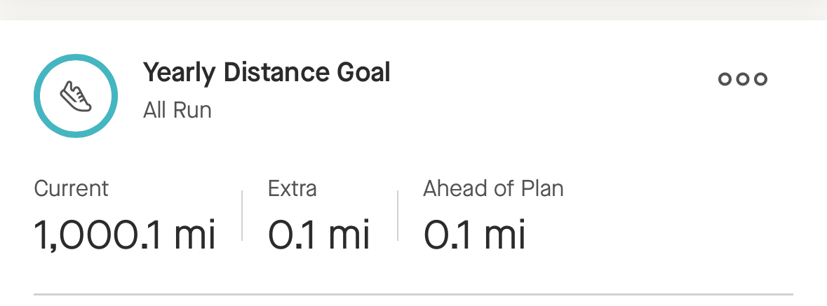 I think that’s the 1st time since 2018 that I’ve run over 1000 miles. Yep, just checked: