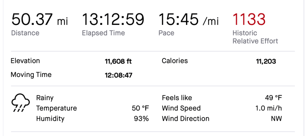 Anyway, I was able to get in this year and was excited to give it another shot. In 2021, I kind of fell apart after mile 45 or so with a tweaked knee and incredibly sore feet, so much so that I had to limp in much of the last 12-15 miles.
