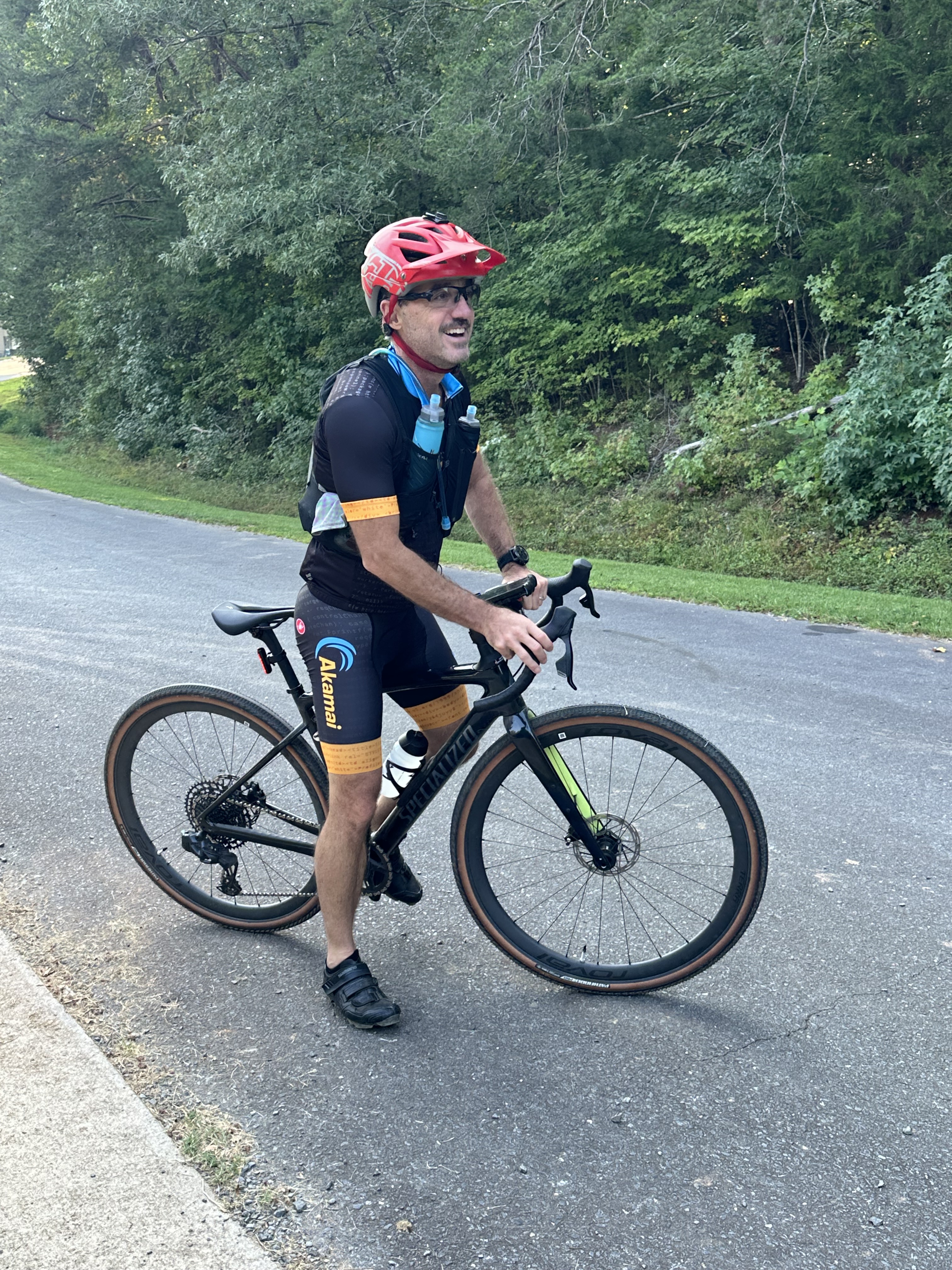 A change of clothes and some food, and it was off on the bike. I had a roughly 50-52 mile loop to start, so that I could come back to the house and eat and resupply food and water. The 2nd loop got really really hot (93F!) and I finally called Kelly who was driving over for the weekend, and asked her to bring a couple bottles of ice water so I could dump them over me and try to bring my body temp down. After that, I met Kelly a few miles away to ride about 10 miles of gravel — while I had originally thought to do a lot of the “event” on gravel, in the end I opted for a lot more pavement so I wouldn’t be out there 24 hours or more!