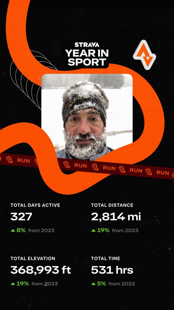 That’s not to say it was a bad year, two ultras and an (unsupported) ironman isn’t bad. :-). And I finally, after years of trying, climbed over 365,000′ in a year (walking, hiking, running, virtual running, biking, and virtual biking).
