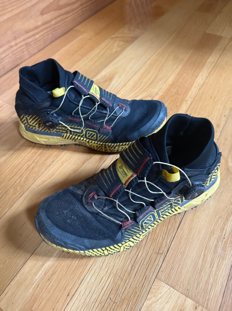 I definitely had trench foot after 24 hours… I had slid into a stream at hour 3 or 4, so my feet were wet early and stayed that way. I had injinji toe socks with an over sock. I would go with a thinner injinji next time. The La Sportiva Cyclan was great, even though it’s advertised as a mid-distance shoe. The traction is really good on the crazy steep terrain we covered.