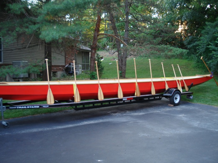 Here is a photo of the dragon boat in action… Our team was able to get in a couple of training runs on it, though getting 16 – 20 paddlers together is tough schedule wise!