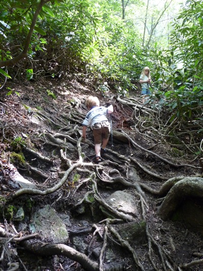Well, we did a lot of things (photos all posted here), but on the last day we finally got a hike in, and here is Reece, climbing his big mountain: