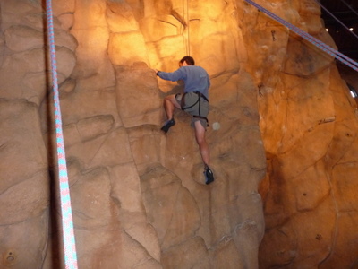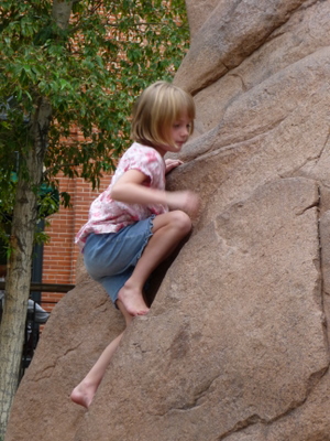 A few more pictures from last week in Colorado… We were at REI and found a bouldering rock, so Riley and I both climbed it. She was going to climb inside, but the rock was closed. We ended up going back on Friday since it was rainy out, and she was able to climb a little. When she saw the boy in front of her come down on the belay so fast, she didn’t want to go, but once I had the REI guy tell her she could come down slow, she did go up about 10 – 12 feet. She then wanted me to climb, and I made it up the 5.7 wall I had done about 10 years ago.