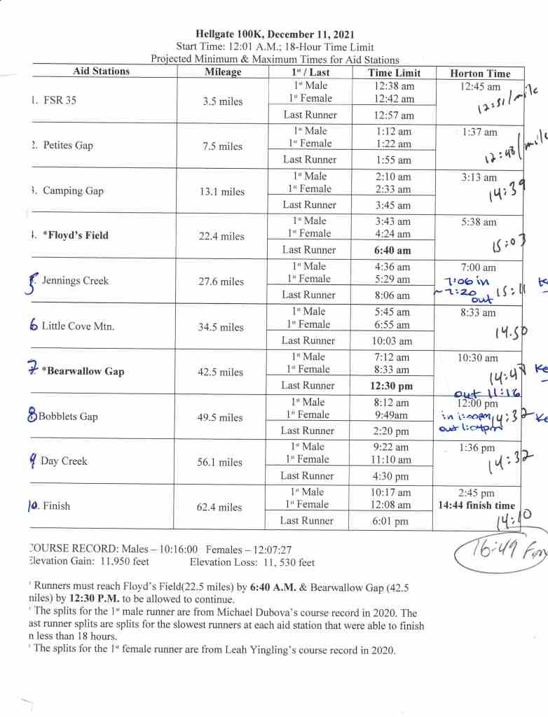From Chimney, it was back down to the park, then up Bird to Ross Gap, and down to the decision point. I had wanted at least a 4 hour buffer (1 hour to the decision point before the cut off), and that had shrunk a lot due to how I felt. However, that last section was my strongest part of the race and according to the intermediary timing results, I had worked my way up from 150th at aid one to 64th at the decision point.