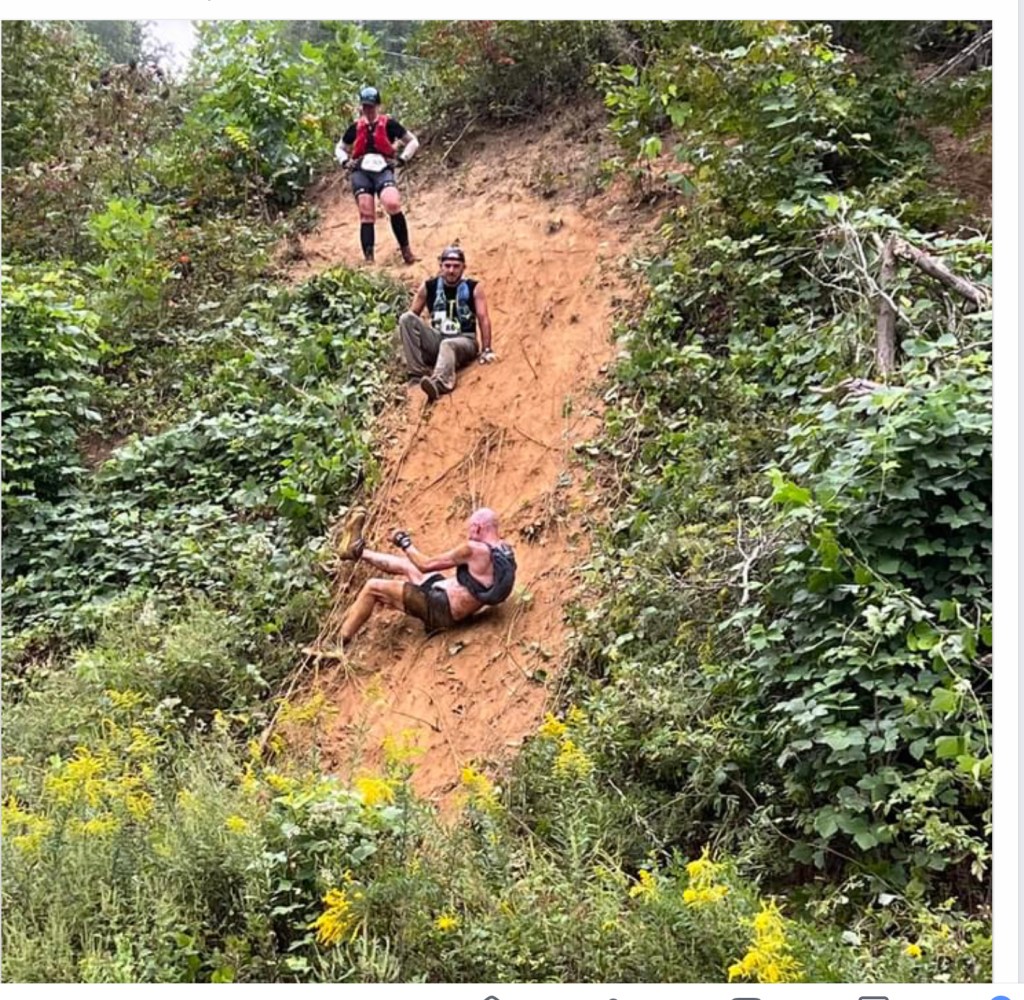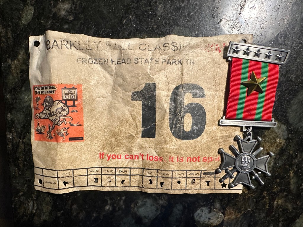 Hardest Barkley Fall Classic yet, both in terms of course difficulty but also in how I felt. 24% finishing rate for the 50k. Heat was brutal. Chimney Top at the start and having to do it a 2nd time at the decision point (marathon vs. 50k) was really tough. I had a bunch of issues all day like feeling way over heated even early in the morning when it wasn’t that hot, cramping, and wanting to quit all day. My quads locked about an hour into the 50k loop, so I sat down and was thinking I should turn back. Then I projectile vomited — 1st time ever — and that was it — I was going back. But I needed time before I could move. About 5 minutes later I was feeling better. Going back for a sure DNF vs going forward for a likely DNF (cut off was getting closer and closer) — what to do? I finally decided if I was going to DNF either way, I was going to go out trying. I had an hour climb in front of me, maybe 90 minutes, and then less than an hour to get down the mountain to the finish. I somehow eeked it out and am now 6 for 6 on 60k finishes. Very proud of that.