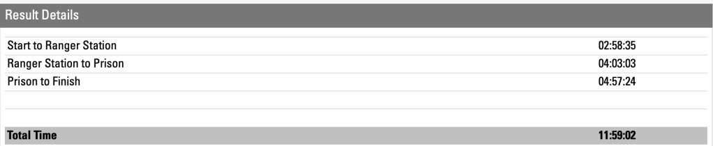 Last year was around 11:45, so not too bad — most runners that finished the 50k last year and this year were about an hour slower this year.